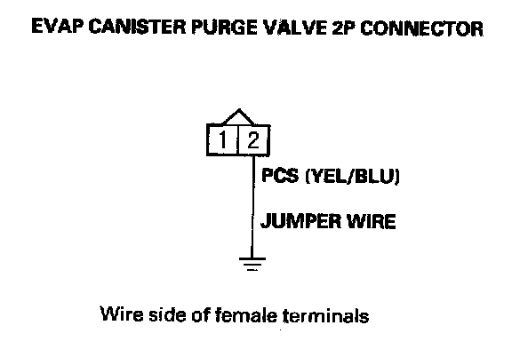 21. Connect EVAP canister purge valve 2P connector terminal No. 2 to body ground with a jumper wire.