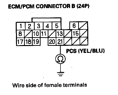 22. Check for continuity between ECM/PCM connector terminal B21 and body ground.