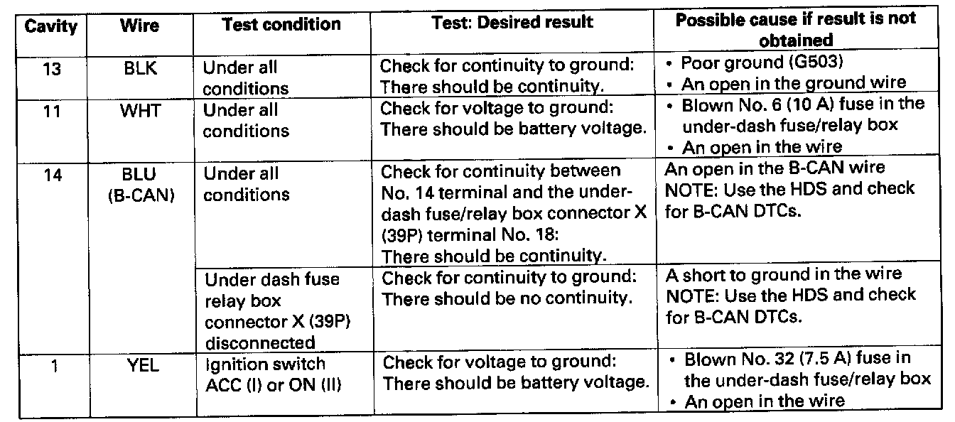 Control Unit Input TestNOTE: Before testing, troubleshoot the multiplex integrated control system using B-CAN System Diagnosis Test Mode A.