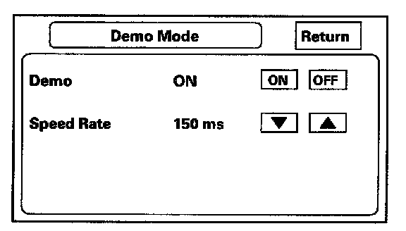 This screen allows the navigation system to "drive" a route, when the vehicle is stationary. Typical applications include auto shows, and other events. This feature allow visitors to enter a destination, and see the system "drive" to the destination. No speed signal is needed.