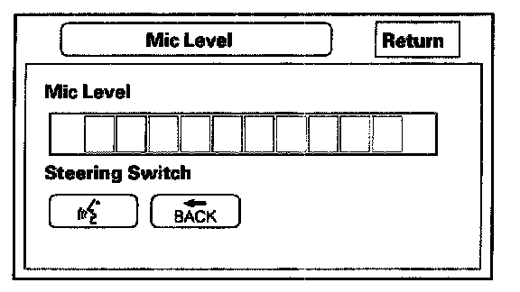 - Press the Talk button on the steering wheel, and in a normal voice say "testing". The TALK indicator on the screen should momentarily become green, and the text "Now Recording..." should appear in yellow. In addition, the Mic Level indicator should move at least to the 6th bar. If the Talk indicator on the screen does not briefly become green, then check the wiring from the Talk button to the navigation unit. If there is no "Mic Level" movement when you speak, then you should check the wire running from the microphone to the control unit.
