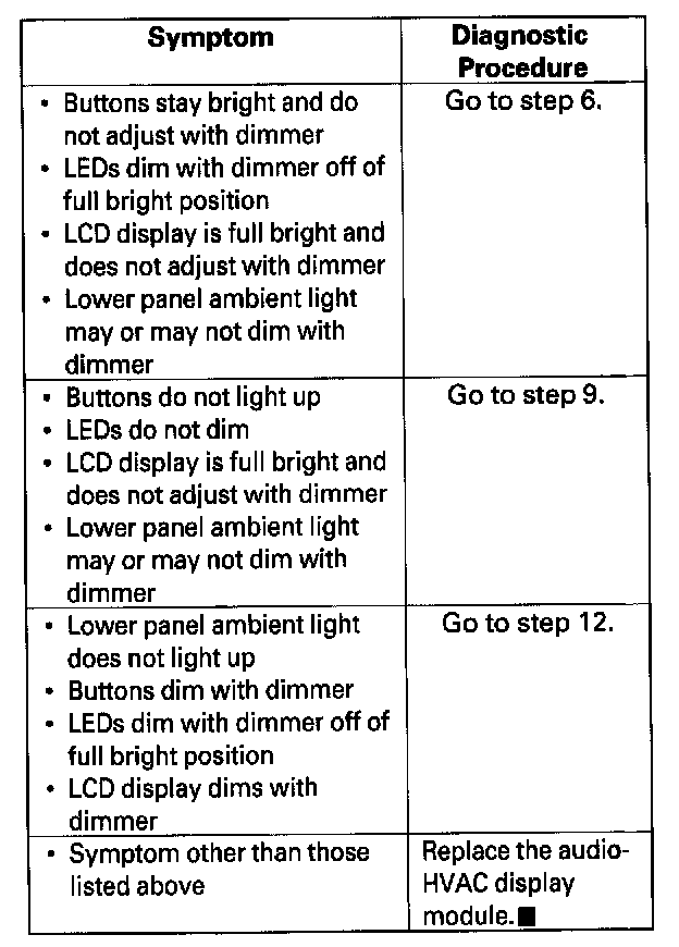 Audio-HVAC Display Module Illumination Troubleshooting