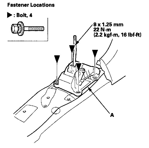 9. Remove the bolts securing the change lever bracket or select lever bracket (A).