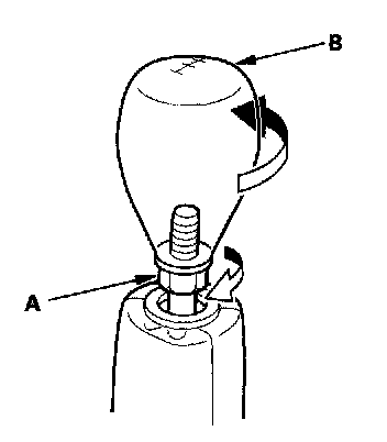 1. M/T model Loosen the locknut (A) to remove the shift knob (B).