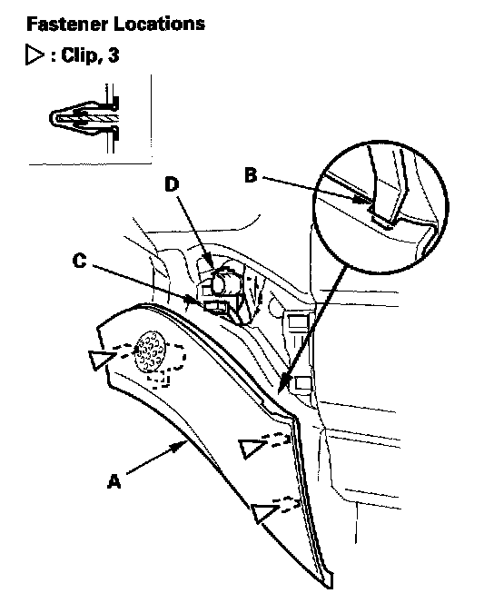 1. Using a trim tool, pry up on the edge of the trim at the notch (B).