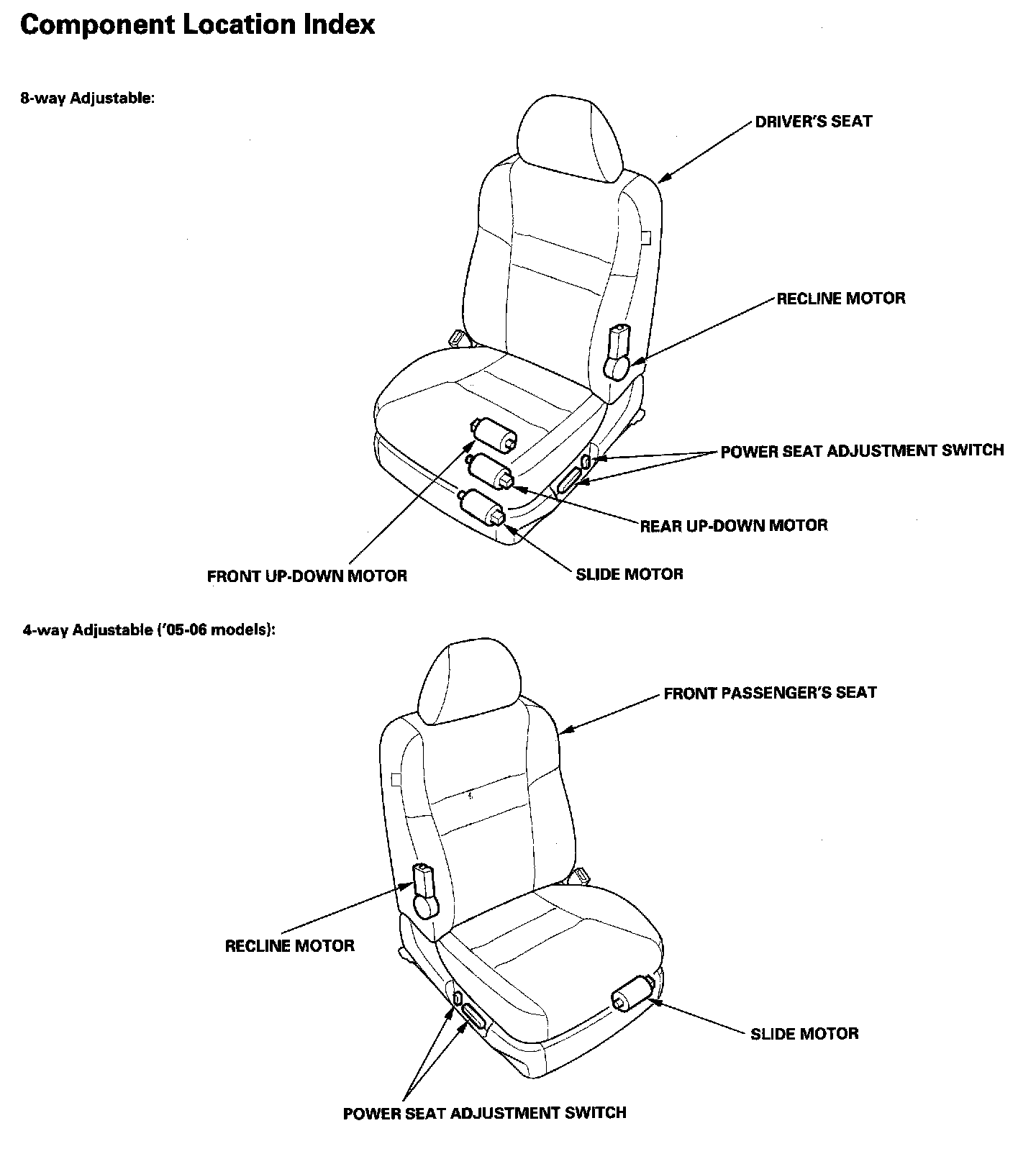 Power Seats - Component Location Index: