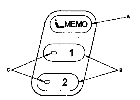 2. Press and hold the MEMO button (A) and both position buttons (B) on the driving position memory switch at the same time.