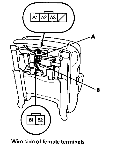 3. Check for continuity between the B1 and B2 terminals of the seat-back heater 2P connector. There should be continuity.