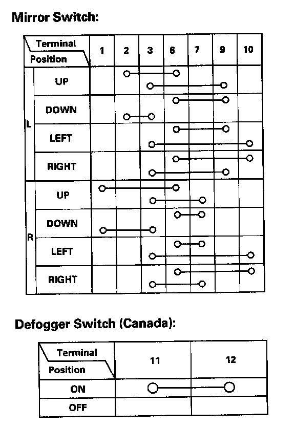 Power Mirror Switch: Testing and Inspection