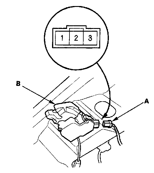 2. Disconnect the 3P connector (A) from the trunk lid latch (B).