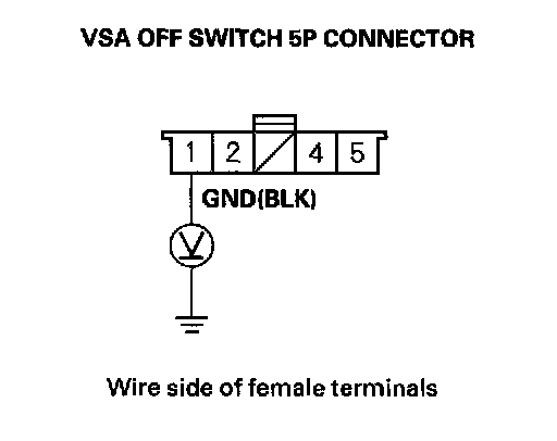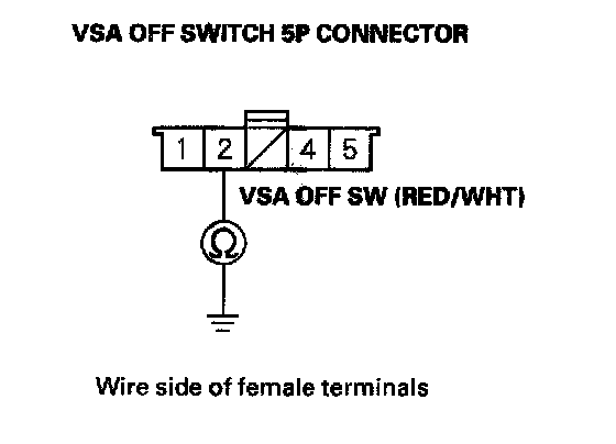 8. Check for continuity between the VSA OFF switch 5P connector terminal No. 2 and body ground.