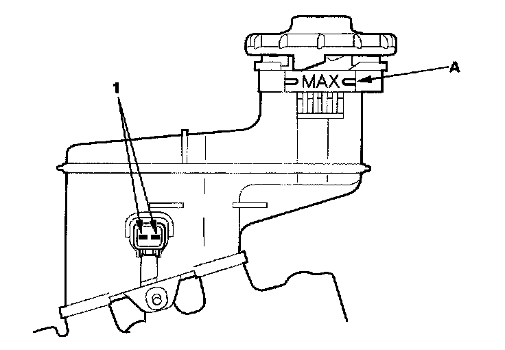 ^ Fill the reservoir with brake fluid to the MAX (upper) level (A). With the float up, there should be no continuity.