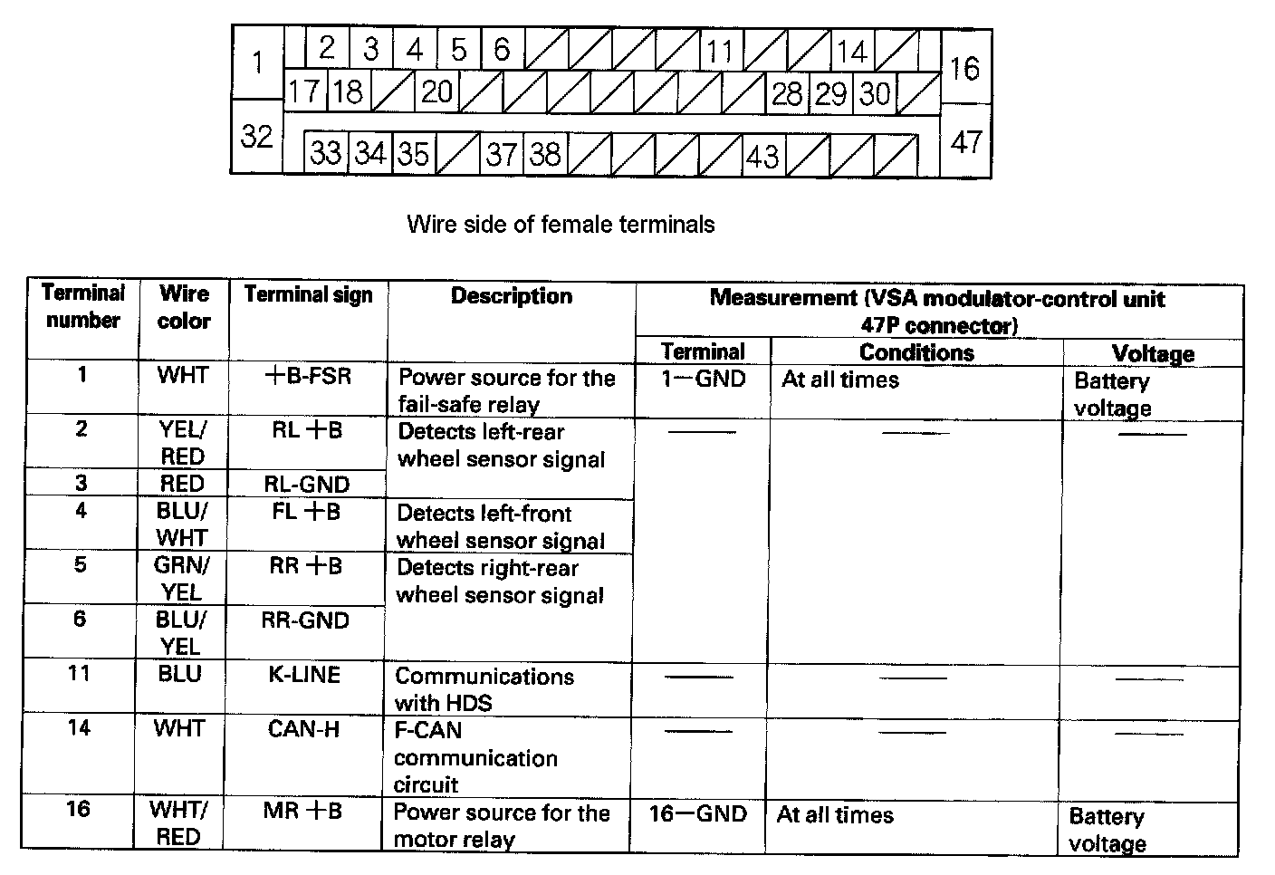 VSA Modulator-control Unit Inputs and Outputs for 47P Connector: