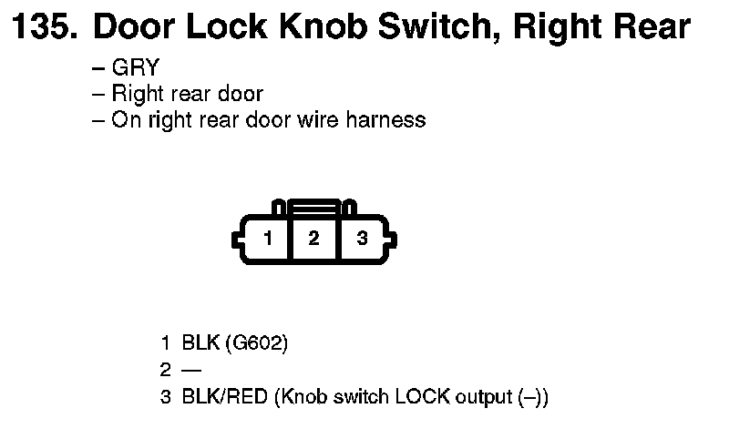 135. Door Lock Knob Switch, Right Rear:
