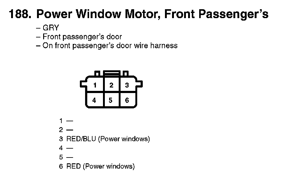 188. Power Window Motor, Front Passenger's: