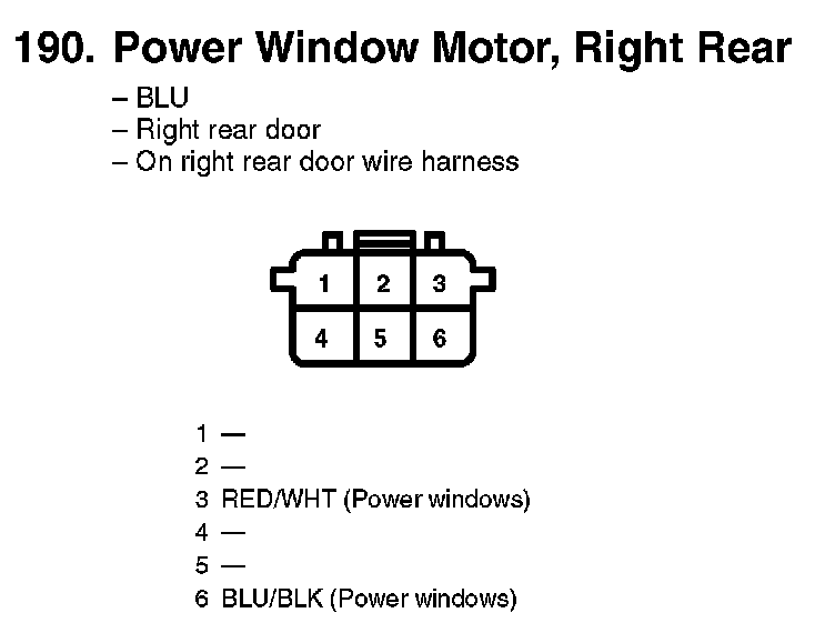 190. Power Window Motor, Right Rear: