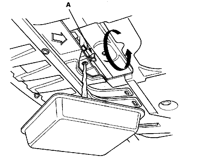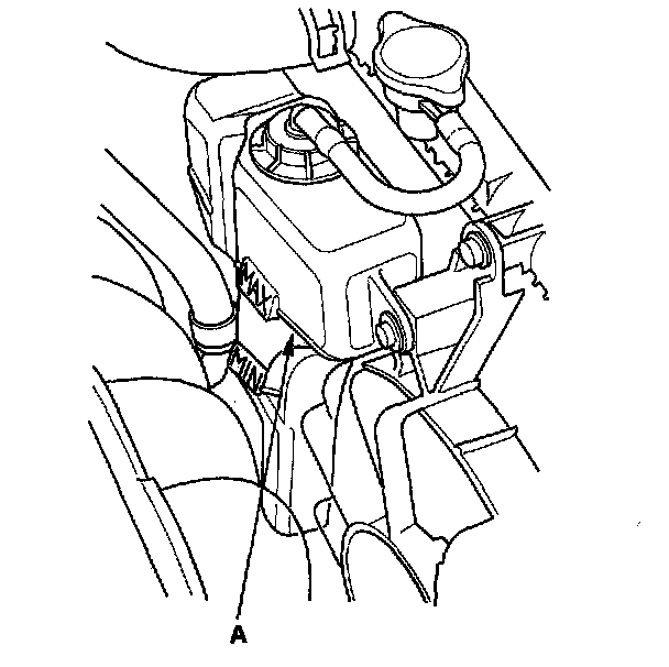 6. Fill the reserve tank to the MAX mark (A) with Acura Long Life Antifreeze/Coolant Type 2 (P/N OL999-9001).