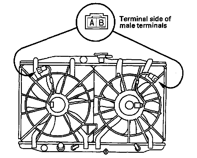 Fan Motor Test1. Disconnect the 2P connectors from the radiator fan motor and condenser fan motor.