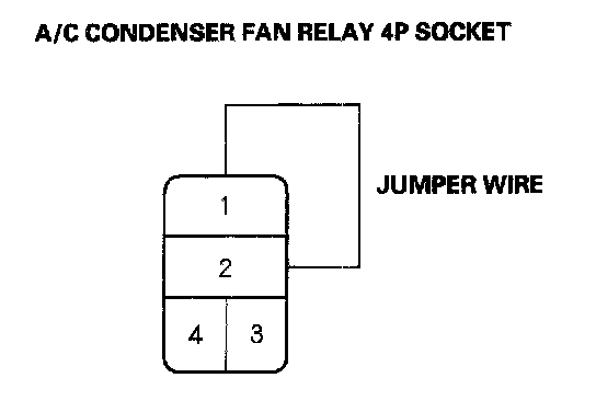 4. Connect the No. 1 and No. 2 terminals of the A/C condenser fan relay 4P socket with a jumper wire.