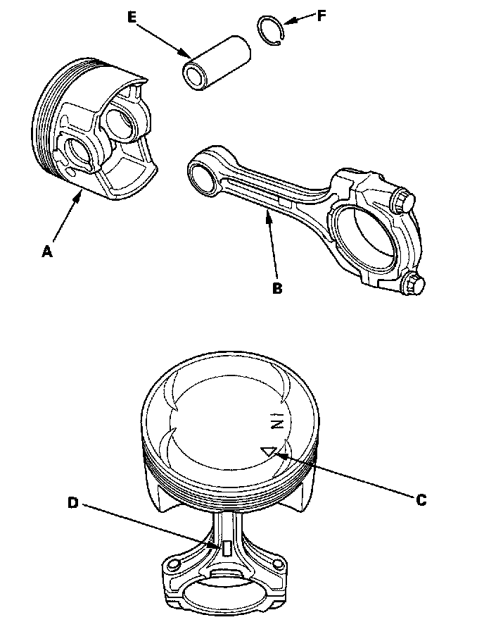 NOTE: Inspect the piston, piston pin, and connecting rod when they are at room temperature.