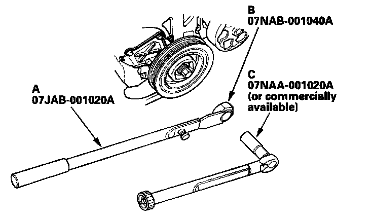 5. Remove the bolt with a 19 mm socket (C) and breaker bar.