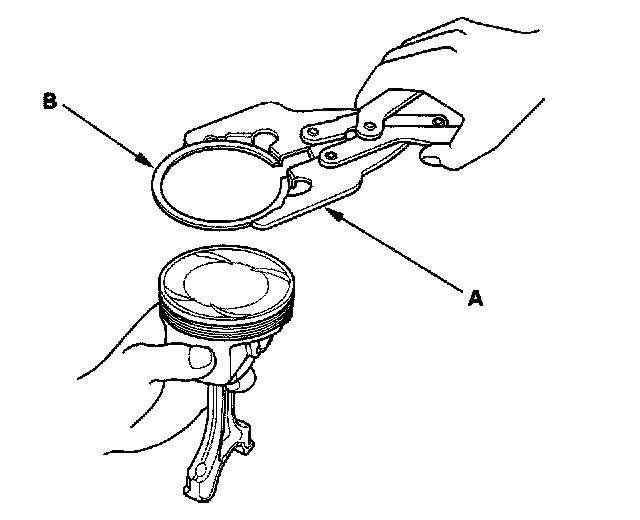 5. Measure the piston ring end-gap (B) with a feeler gauge: