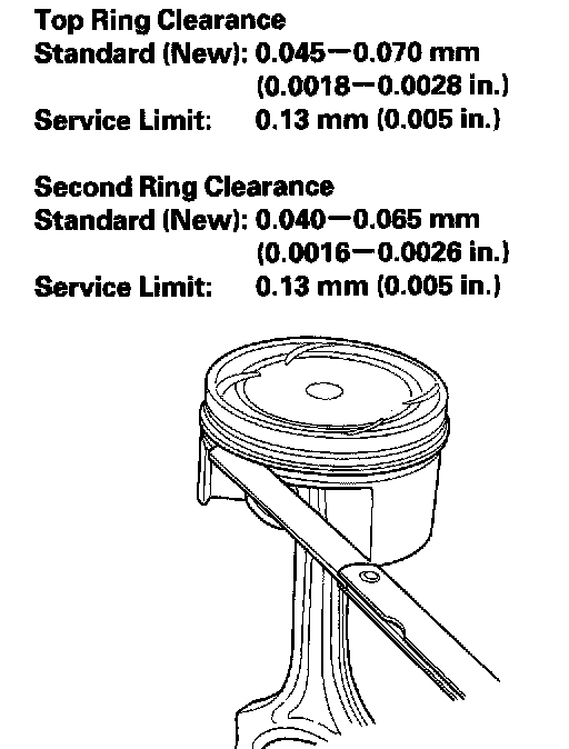 9. After installing a new set of rings, measure the ring-to-groove clearances.