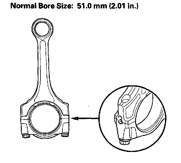 2. Each rod has a tolerance range from 0 to 0.024 mm (0 - 0.0009 inch), in 0.006 mm (0.0002 inch) increments, depending on the size of its big end bore. It's then stamped with a number or bar (1, 2, 3, or 4/I, II, III, or IIII) indicating the range. You may find any combination of numbers and bars in any engine. (Half the number or bar is stamped on the bearing cap, the other half is on the rod.)