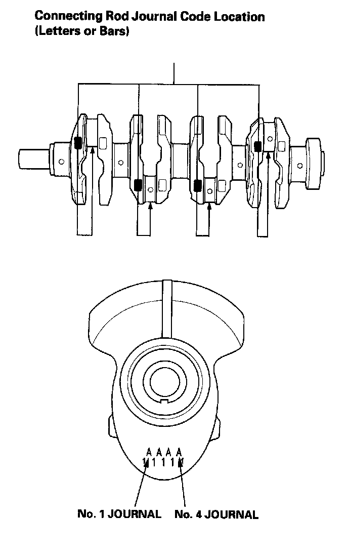 3. The connecting rod journal codes are stamped on the crankshaft.