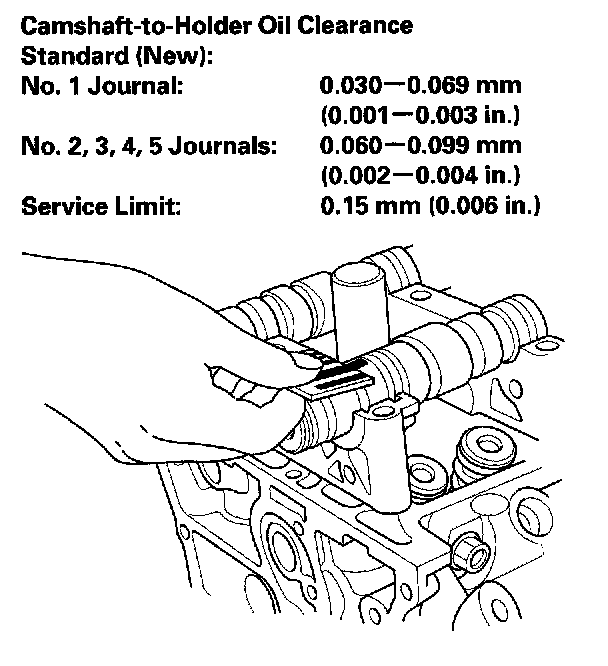 ^ If the camshaft-to-holder clearance is beyond the service limit and the camshaft has been replaced, replace the cylinder head.