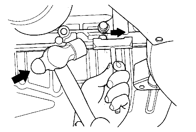 20. Cut the oil pan seal by striking the side of the cutter to slide the cutter along the oil pan.