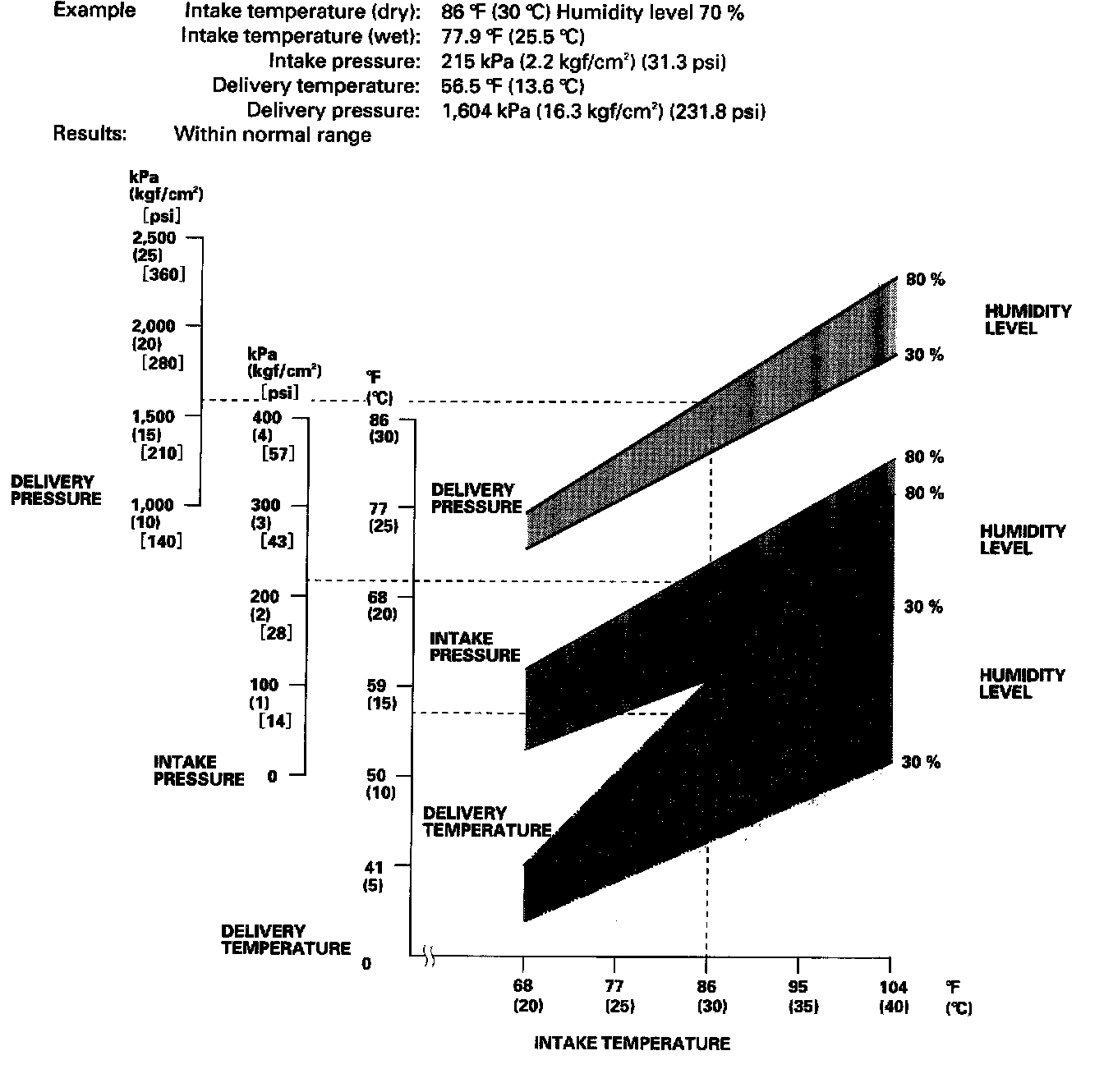 - Mark the intake temperature (ambient air temperature) along the bottom line.