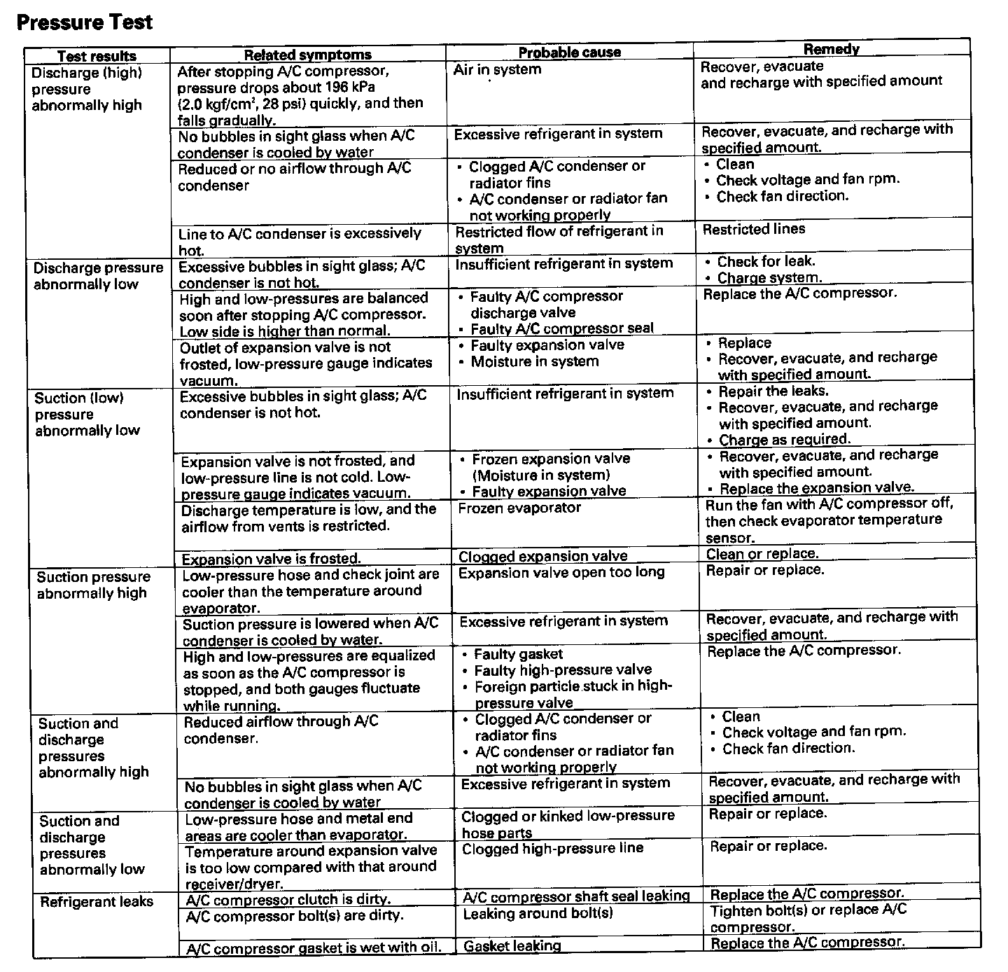 R-134a service equipment or vehicle air conditioning systems should not be pressure tested or leak tested with compressed air.