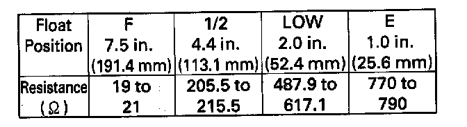 14. Check that the pointer of the fuel gauge indicates "F" with the float at F.