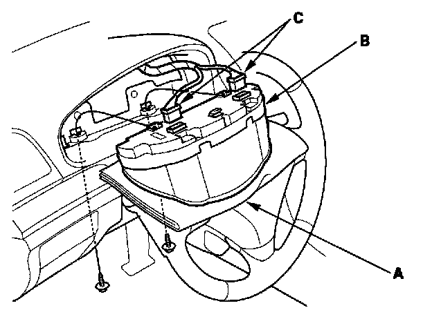 4. Disconnect the 22P and 18P connectors (C), then remove the gauge control module.