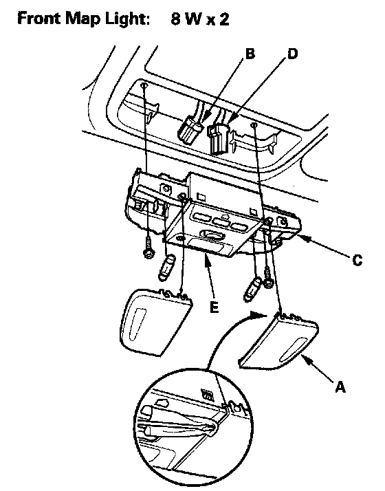 Front Individual Map Light Replacement1. Carefully pry off the lens (A) with a small screwdriver.
