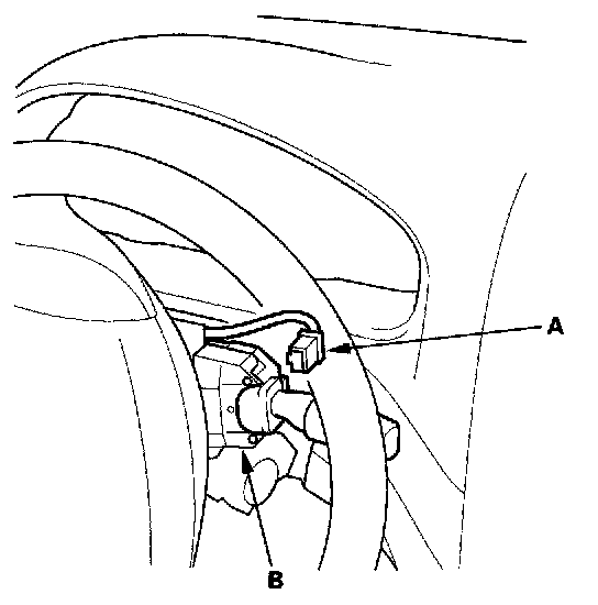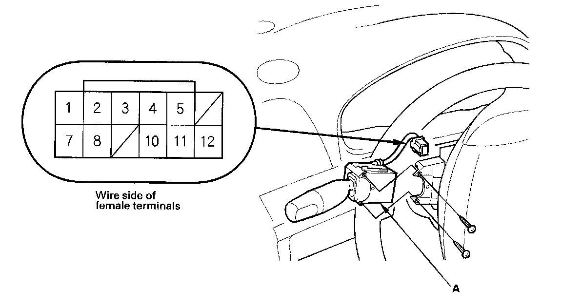 3. Disconnect the 12P connector (A) from the wiper/washer switch (B).