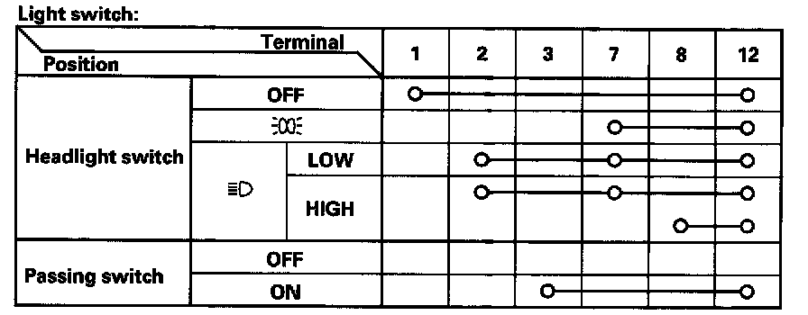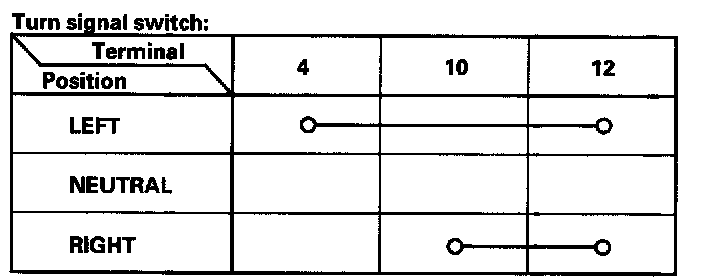 - If the terminals look OK, check for continuity between the terminals in each switch position according to the tables.