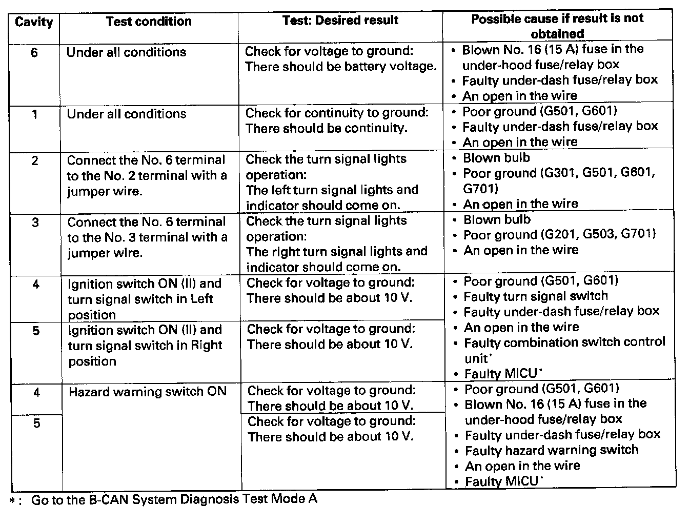 - If all the input tests prove OK, the turn signal/hazard relay must be faulty; replace it.