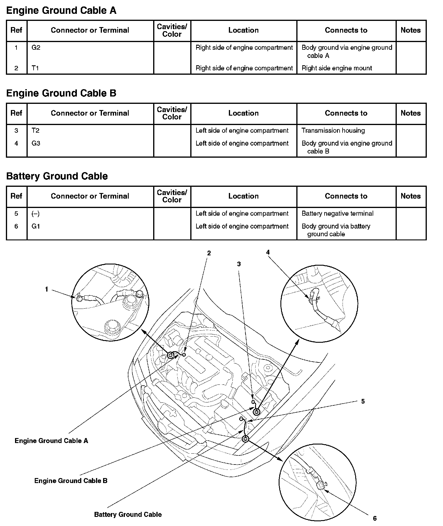 Engine Ground Cable A/Engine Ground Cable B/Battery Ground Cable: