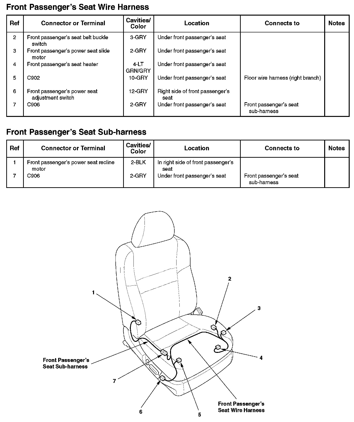 Front Passenger's Seat Wire Harness/Front Passenger's Seat Sub-harness: