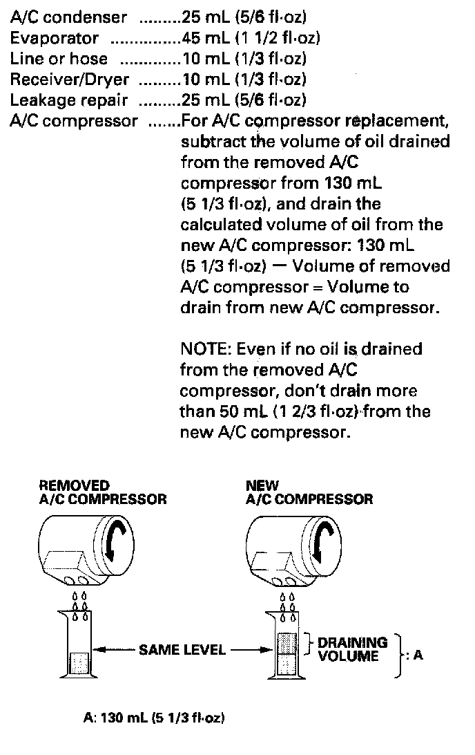 A/C Refrigerant Oil ReplacementRecommended PAG oil: KEIHIN SP-10