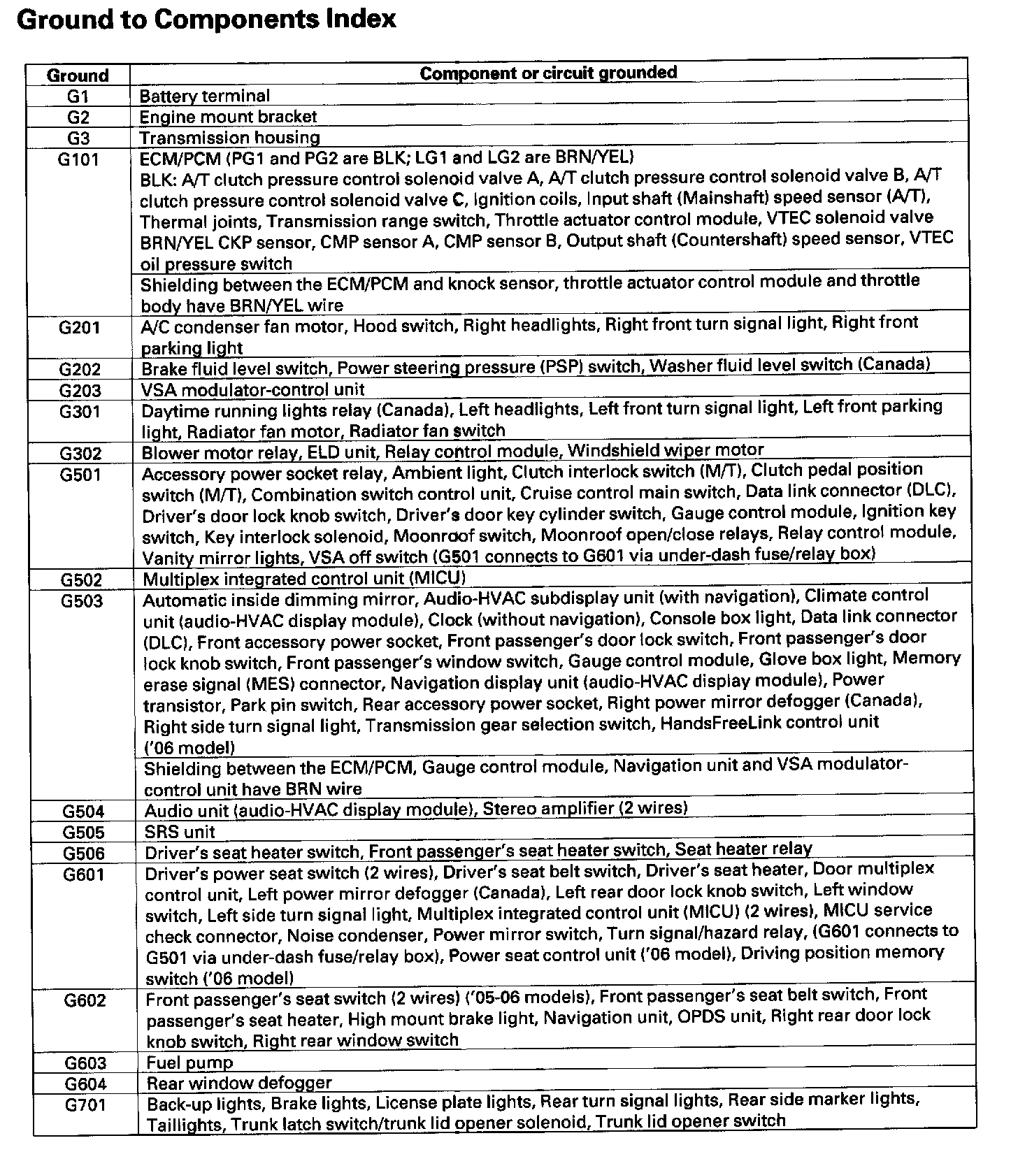 Ground To Components Index: