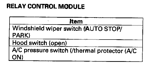 - DTC 2 only (no other DTCs present): Go to the relay module input test. Relay Control Module Input Test If all inputs are OK, substitute a known-good relay module and then a MICU, one at a time, and then check for DTCs. If a DTC recurs after a substitution, replace that unit.