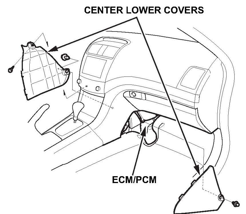 1. Remove the center lower covers and inspect the ECM/PCM.