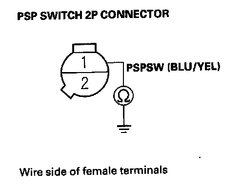24. Check for continuity between PSP switch 2P connector terminal No. 2 and body ground.