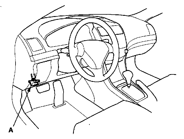 2. If the MIL stays on, connect the HDS to the data link connector (DLC) (A) located under the driver's side of the dashboard.