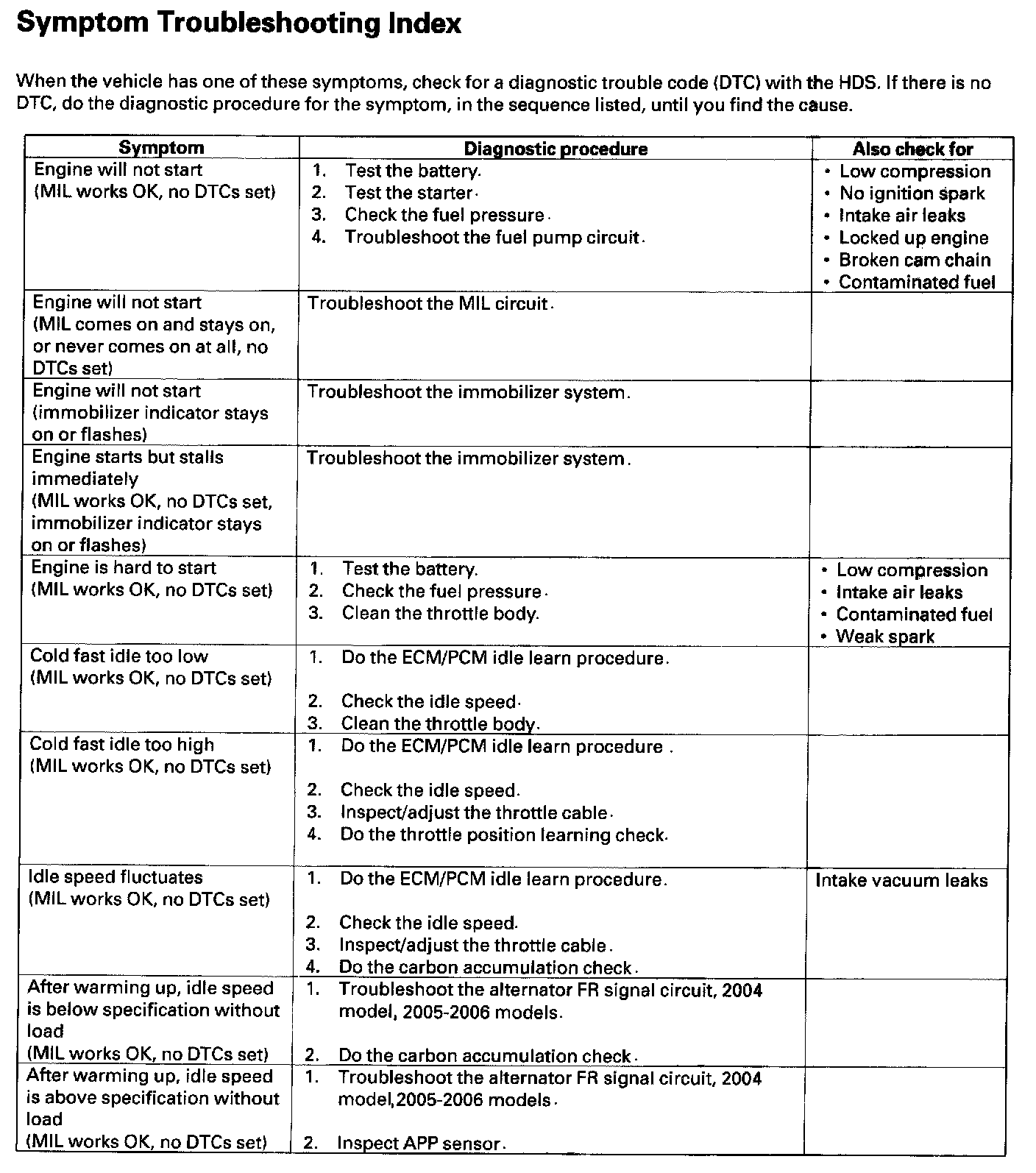 Symptom Troubleshooting Index Part 2: