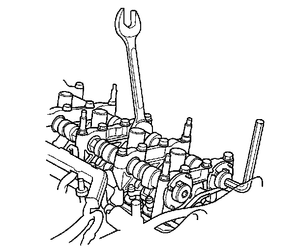 2. Hold the camshaft with an open-end wrench, then loosen the bolt.