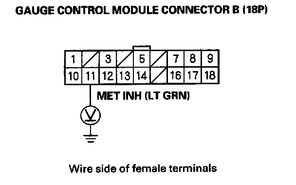 6. Measure the voltage between gauge control module connector terminal B11 and body ground.
